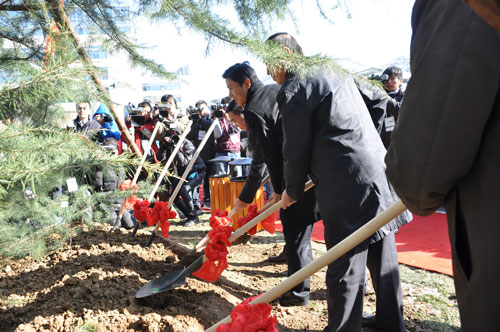 今天我們最親愛的網(wǎng)友們?yōu)榱吮磉_(dá)他們對百度的祝福,不遠(yuǎn)千里送來了代表神州大地五岳之土和長江、黃河之水。山東網(wǎng)友前往泰山取土,送來東岳之土;陜西網(wǎng)友前往華山取土,送來西岳之土;湖南網(wǎng)友前往衡山取土,送來南岳之土;山西網(wǎng)友前往橫山取土,取來北岳之土;河南網(wǎng)友前往嵩山取土,取來南岳之土;網(wǎng)友前往南京長江大橋,送來長江之水;山西網(wǎng)友前往黃河虎口瀑布取來黃河之水。下面讓我們掌聲有請北京市委常委、海淀區(qū)位書記趙鳳桐先生;山西省省委常委、統(tǒng)戰(zhàn)部部長李政文先生;山西省政協(xié)副主席衛(wèi)小春先生;我們的董事長兼首席運營官、執(zhí)行官李彥宏先生;首席財務(wù)官杰尼;技術(shù)首席執(zhí)行官李一男;副總裁任旭陽一起前往植樹區(qū)進(jìn)行植樹環(huán)節(jié)。有請。