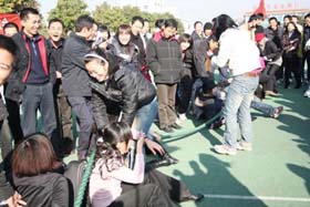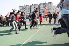 寒風(fēng)簌簌,陽光絢爛。在2008年12月6日這個(gè)寒冷而富有激情的日子里,我司第一屆冬季運(yùn)動會火熱開展。為了充分調(diào)動大家的激情,此次比賽項(xiàng)目的策劃可謂煞費(fèi)苦心。除了籃球賽、4*100接力賽、100米短跑、乒乓球比賽、等傳統(tǒng)比賽項(xiàng)目外,新增了很多趣味比賽項(xiàng)目如:趕小豬、兩人三足跑、夾球跑……大家玩得不亦樂乎!為了充分調(diào)動大家積極性,我們?yōu)檫\(yùn)動健兒們準(zhǔn)備了豐富的獎(jiǎng)品,有棉被、電蒸鍋、電熱水捂、手套、圍巾、領(lǐng)帶、保溫杯、指套裝、收音機(jī)、筆筒等等。我們還特設(shè)抽獎(jiǎng)環(huán)節(jié),每項(xiàng)比賽的前三名都會獲得一張“金卡”,拿著金卡可以抽獎(jiǎng),中獎(jiǎng)率為100%,未得金卡的選手們也將得到一份精美禮品。