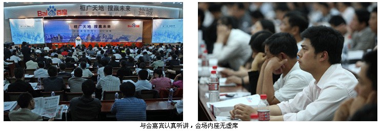 6月10日,陰雨綿綿?!盃I銷中國行”活動在鹽隆重拉開帷幕。此次活動旨在探討如何提升企業(yè)網(wǎng)絡營銷能力來促進地方經(jīng)濟繁榮,受到政府、學術界、商界的高度重視。市經(jīng)信委主任羊維達、臺灣因特網(wǎng)營銷研究協(xié)會秘書長陳定震、百度公司服務管理部總監(jiān)任建斌、百度公司渠道部銷售總監(jiān)欒天、百度公司渠道部渠道經(jīng)理曹宇等35位嘉賓以及500多家鹽城市重量級企業(yè)家代表出席了活動,共同見證這一盛況!