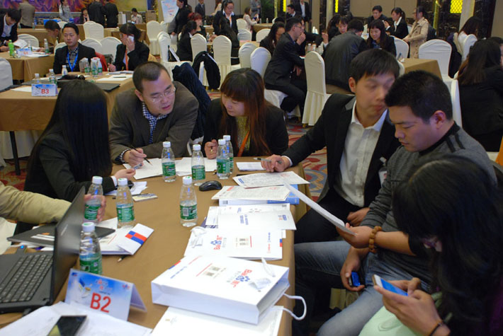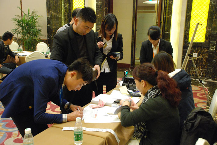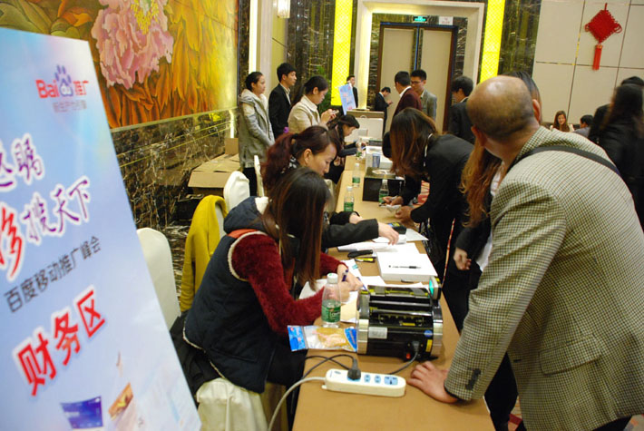 現(xiàn)場企業(yè)家向工作人員咨詢百度移動搜索推廣