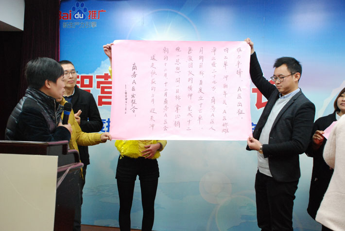 胡總給全體同仁做動員令,期間,個人及部門挑戰(zhàn)PK不斷涌現(xiàn),會場硝煙彌漫火藥味十足,PK永遠(yuǎn)是勇敢者的游戲。